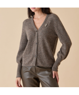 129,00 €Craquez pour ce cardigan en jersey maille doudou signé Diplodocus, aussi doux que tendance. Avec son col V boutonné, ses manches tombantes bouffantes, son grand bord-côte et sa broche fantaisie, il allie confort et style au quotidien.